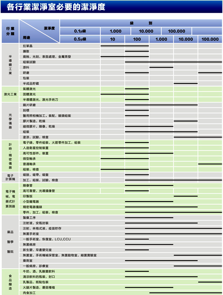 各行业洁净室必要的洁净度